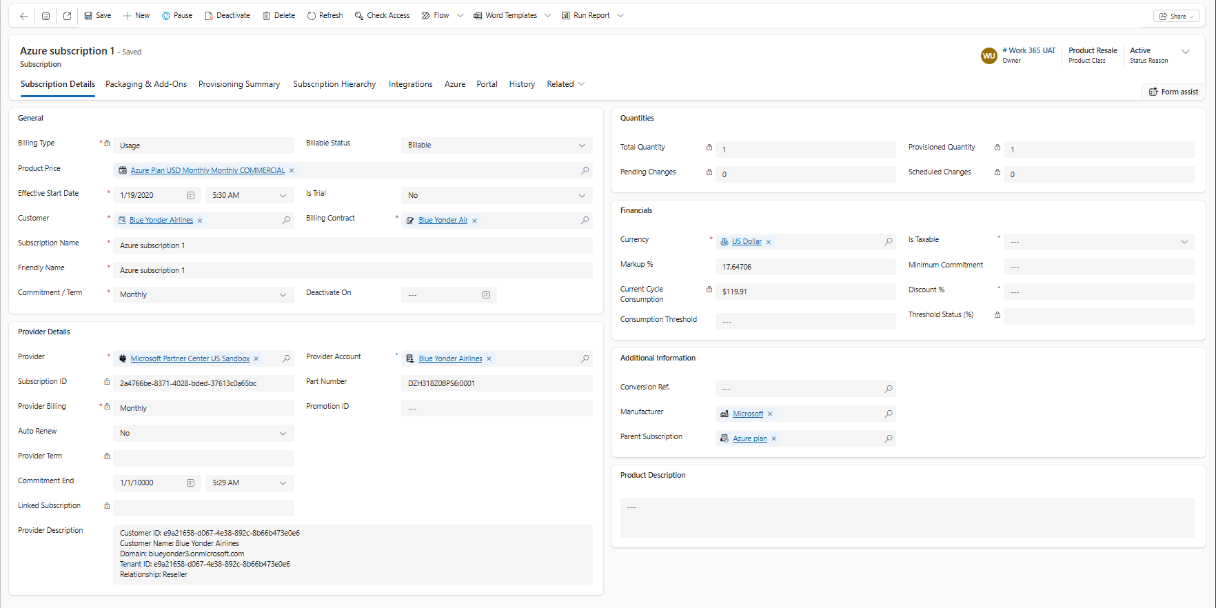 - Markup % - this field shows the markup % applied to the consumption associated with this subscription. The markup % is applied when the consumption is imported into the system.