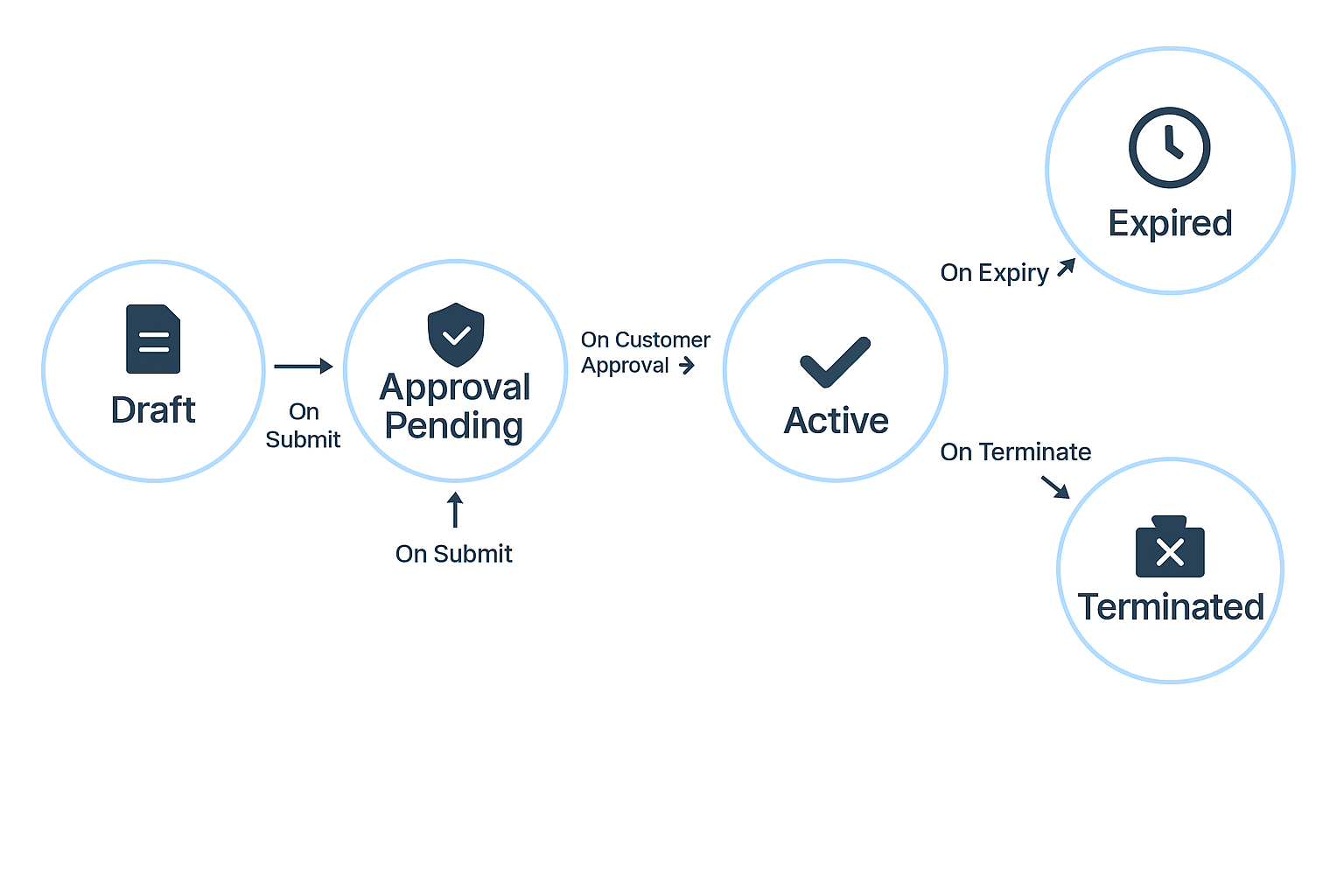 Approval Pending | On successful Submit of the request, the status changes to Approval Pending . At this point the GDAP request is submitted to Microsoft and is awaiting customer approval. (see note below). | User clicks Submit button. |