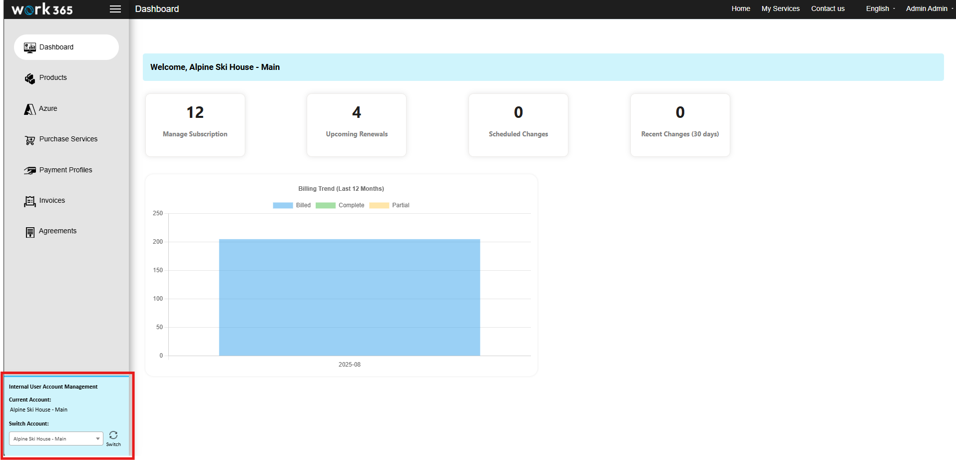 The selected customer's portal will load immediately after confirmation, allowing full impersonation access.