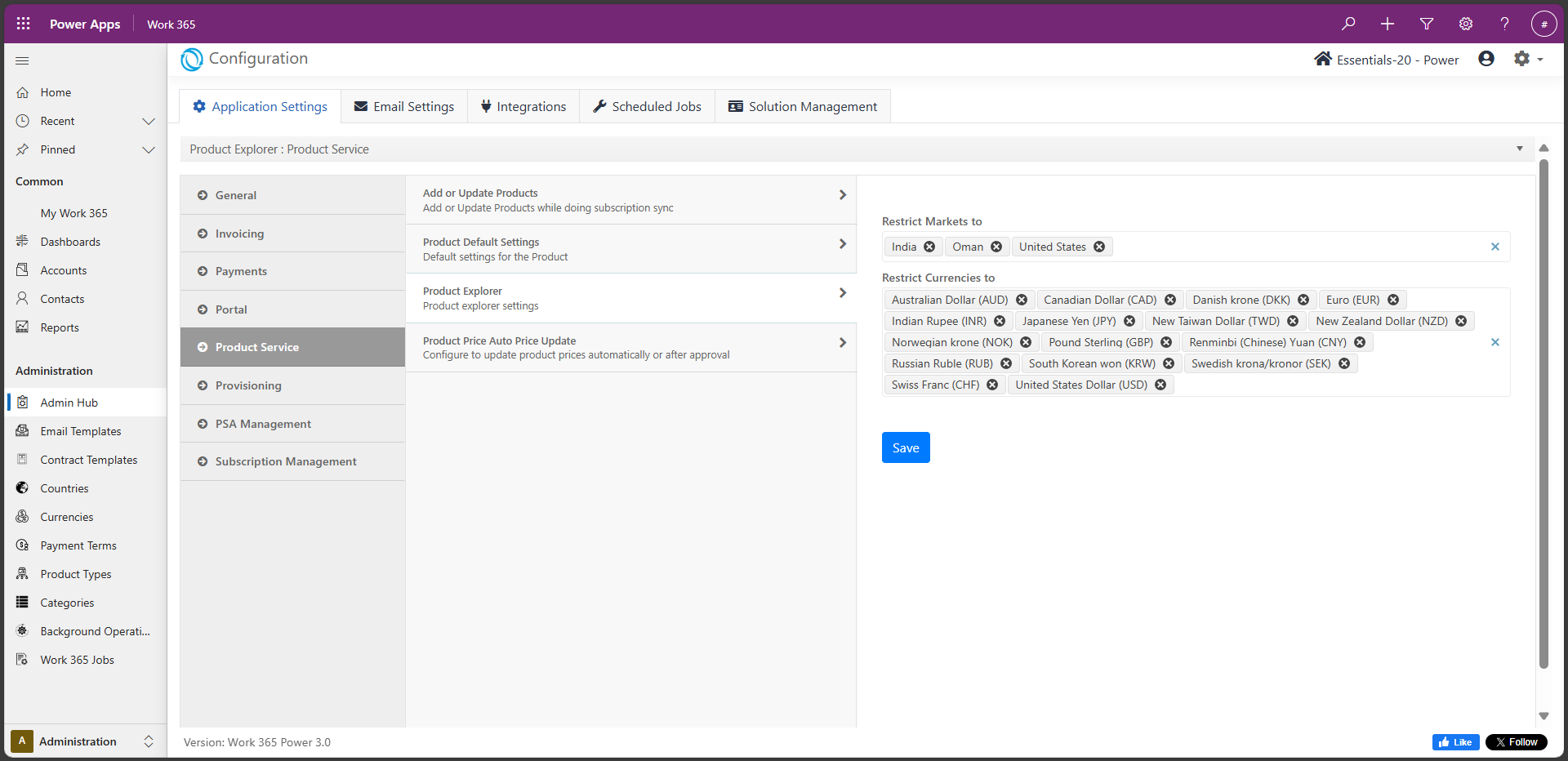 - Pricing for Products is supported for the markets where work 365 is able to import via an API.