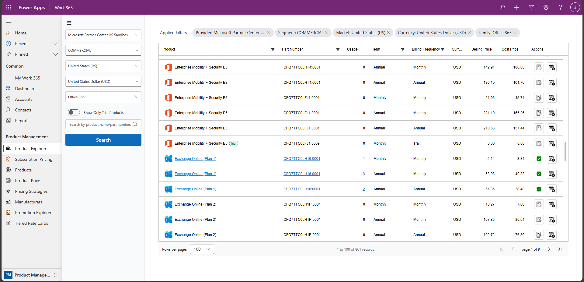 The Product Explorer surfaces prices that are available in the Microsoft CSP product catalog.