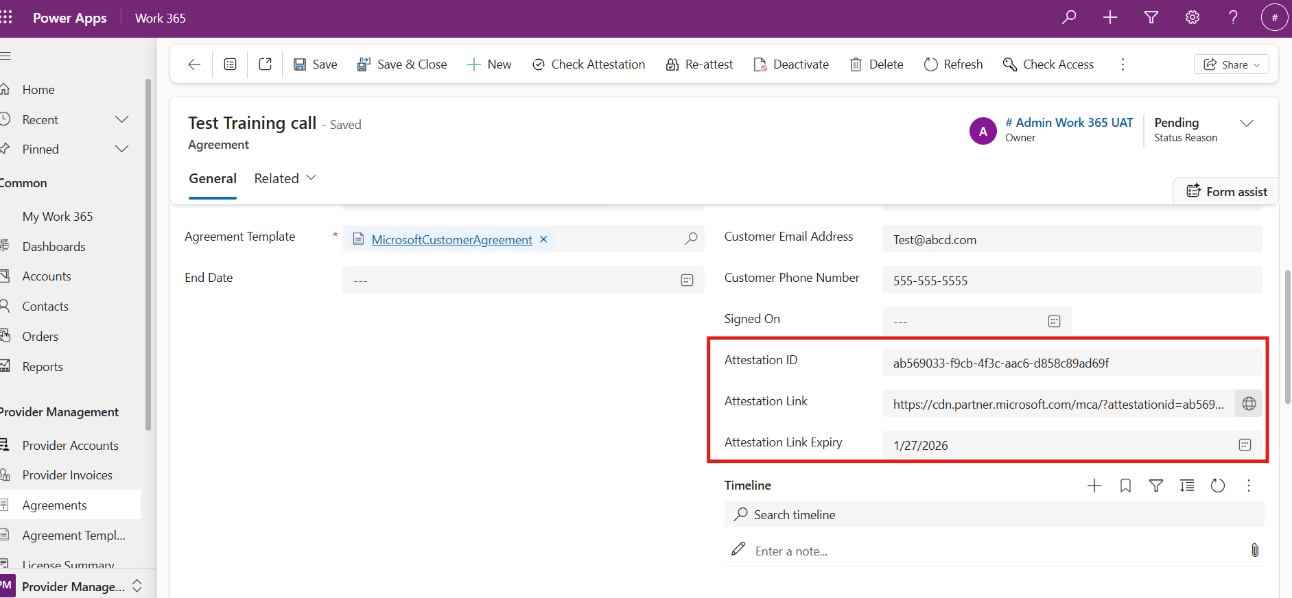 - Send the link to the customer to accept the attestation